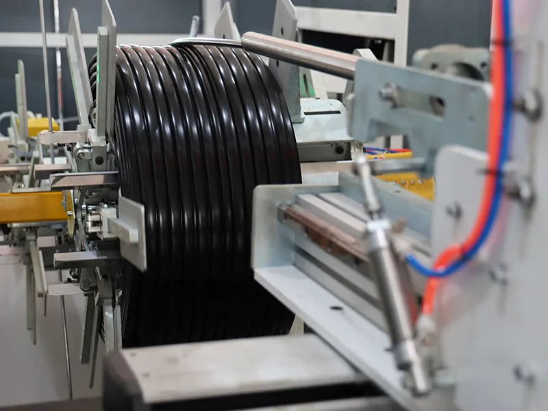 The PE pipe coiling & strapping machine is an integrated solution designed for PE pipe production, including water supply pipes, drainage pipes, and irrigation pipes. By integrating guiding, coiling, tension control, strapping, and output into a single automated workflow, the system adapts to a wide range of pipe specifications and effectively addresses issues associated with manual coiling, such as low efficiency, uneven strapping, and product deformation. It significantly improves automation level and finished product quality, serving as a core piece of equipment for efficient and standardized pipe production.